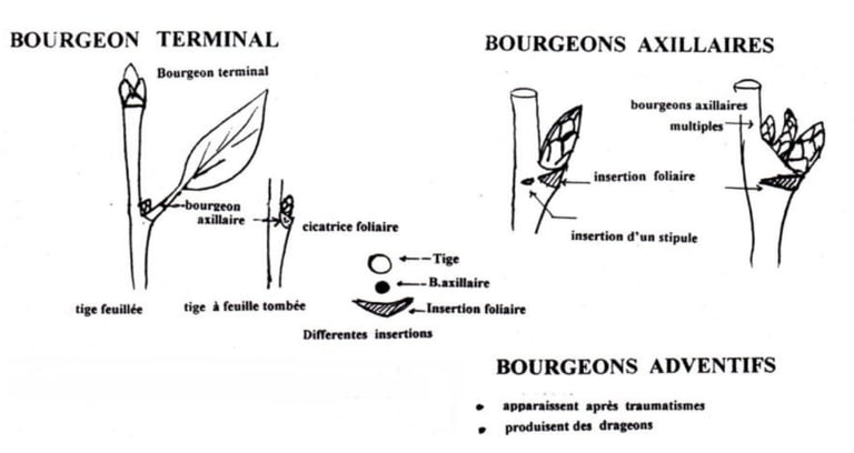 Proventif : bourgeon présent sur la tige mais dormant sous l’écorce qui peut être activé par la plante en fonction de ses besoins.